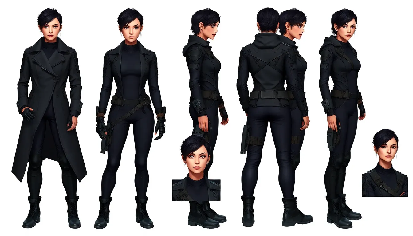 The overall look is a modern sci-fi operative aesthetic with realistic fabric,