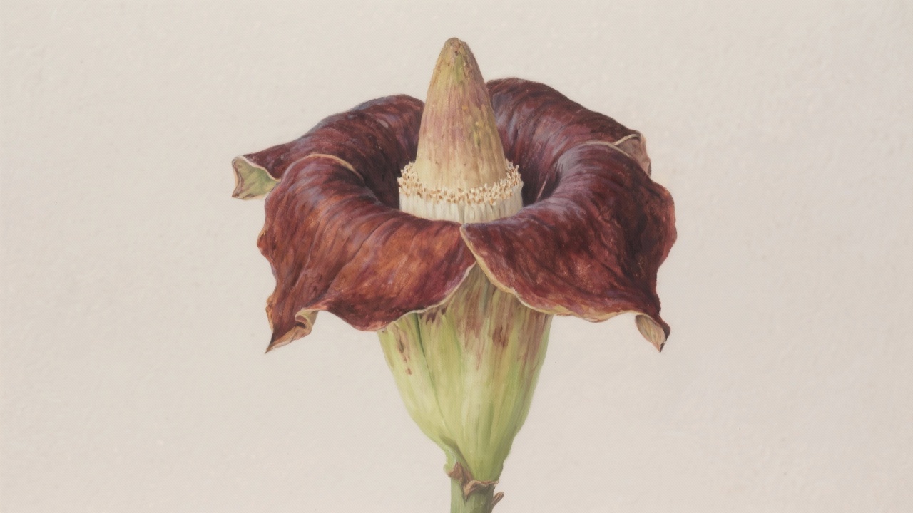 Prompt: a painting of Amorphophallus konjac, on a completely blank background