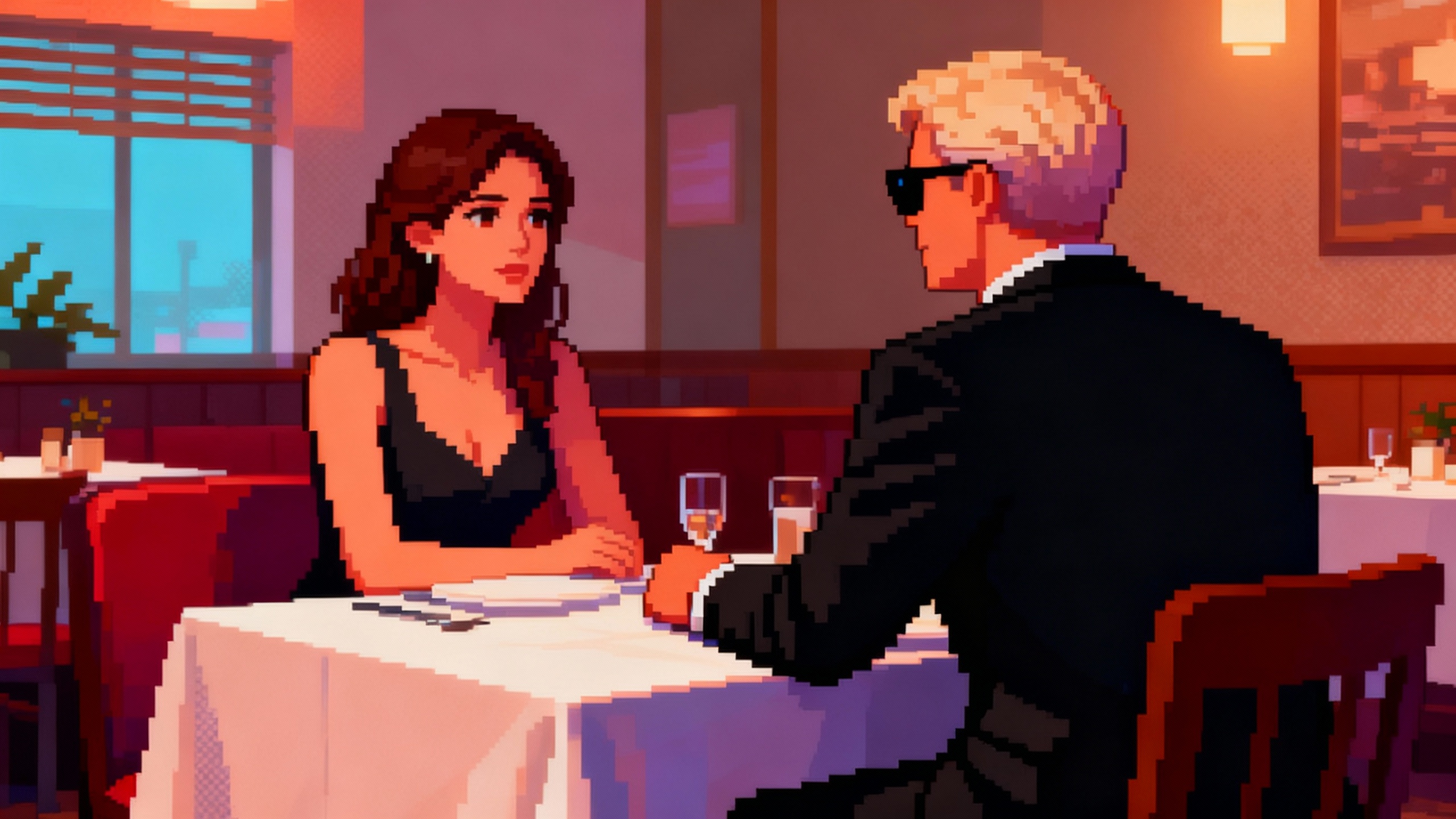 Prompt: pixelated video of a guy sitting still in a limo driving down a street in miami