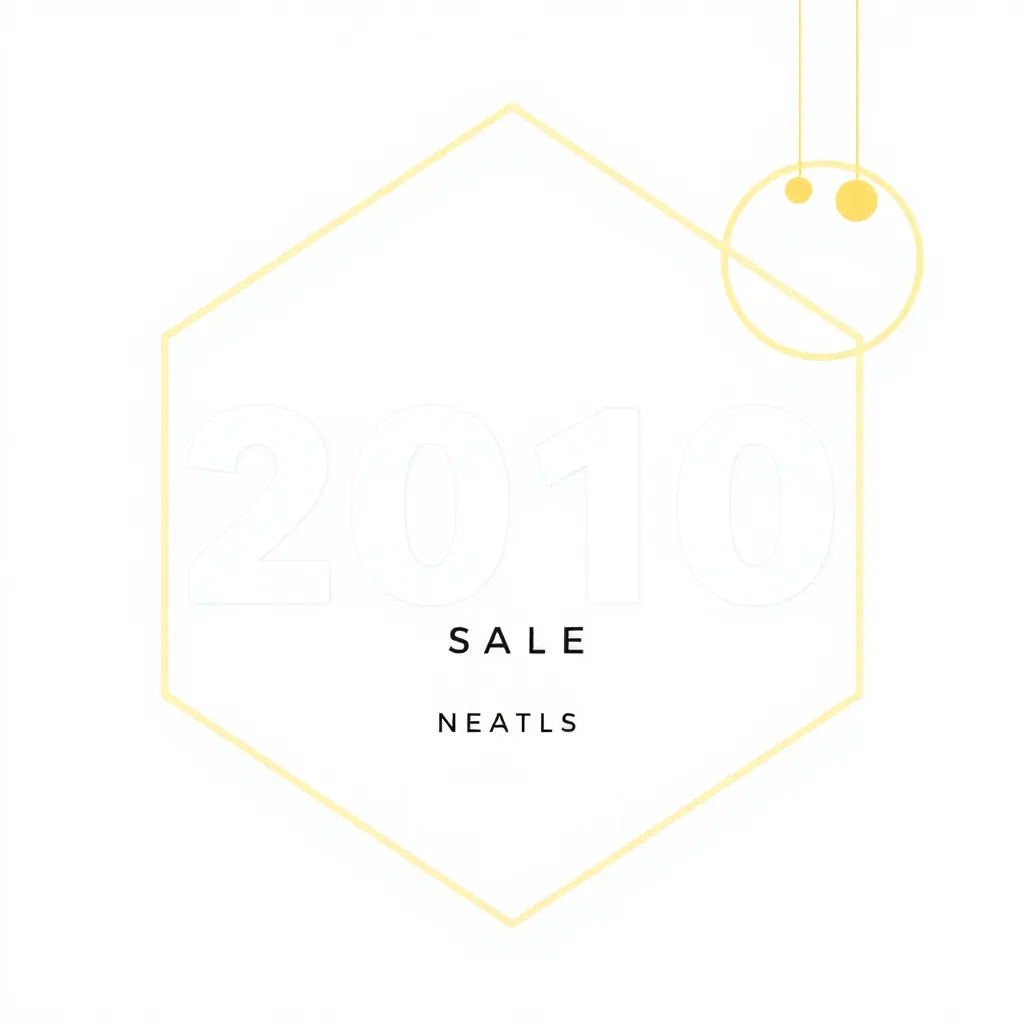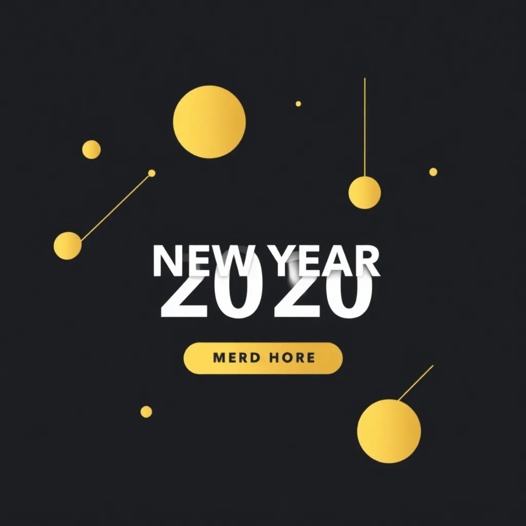 Prompt: Minimalist editable vector New Year sale banner, clean modern layout, abstract golden shapes, geometric grid design, typography placeholders, scalable SVG, flat colors, professional branding aesthetic