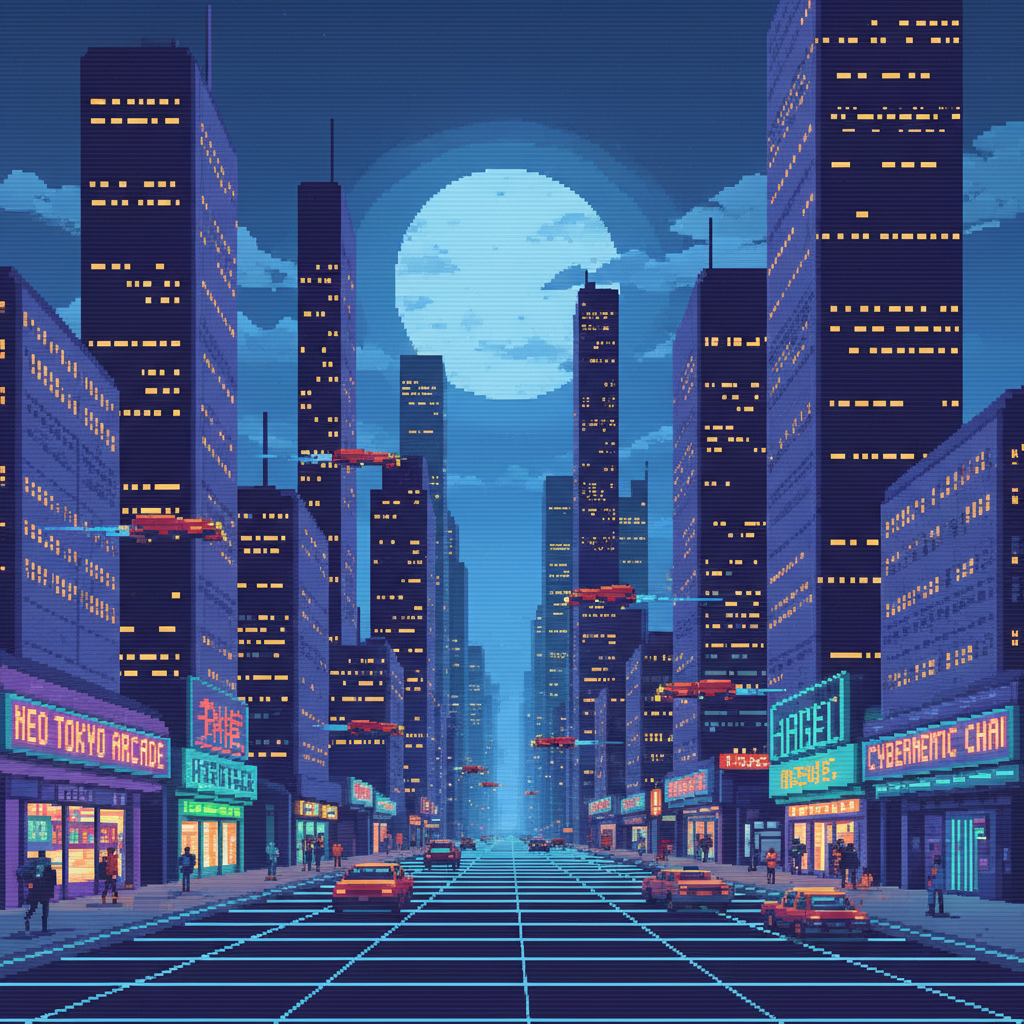 Prompt: make it stylized pixel art neon futuristic style