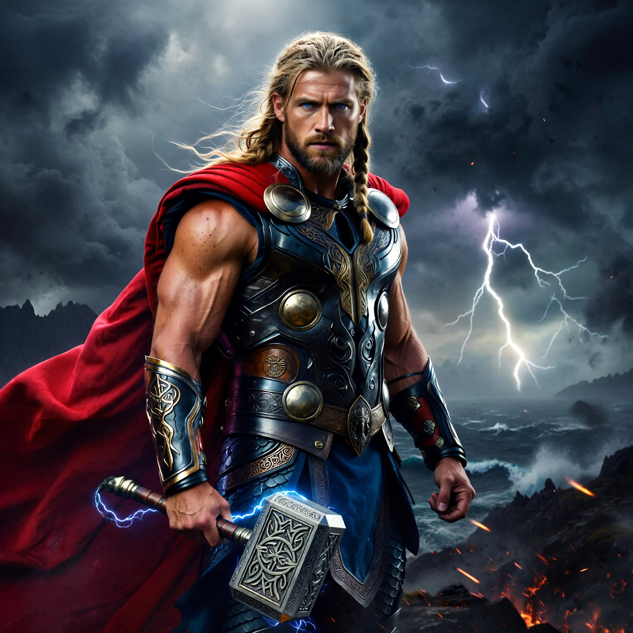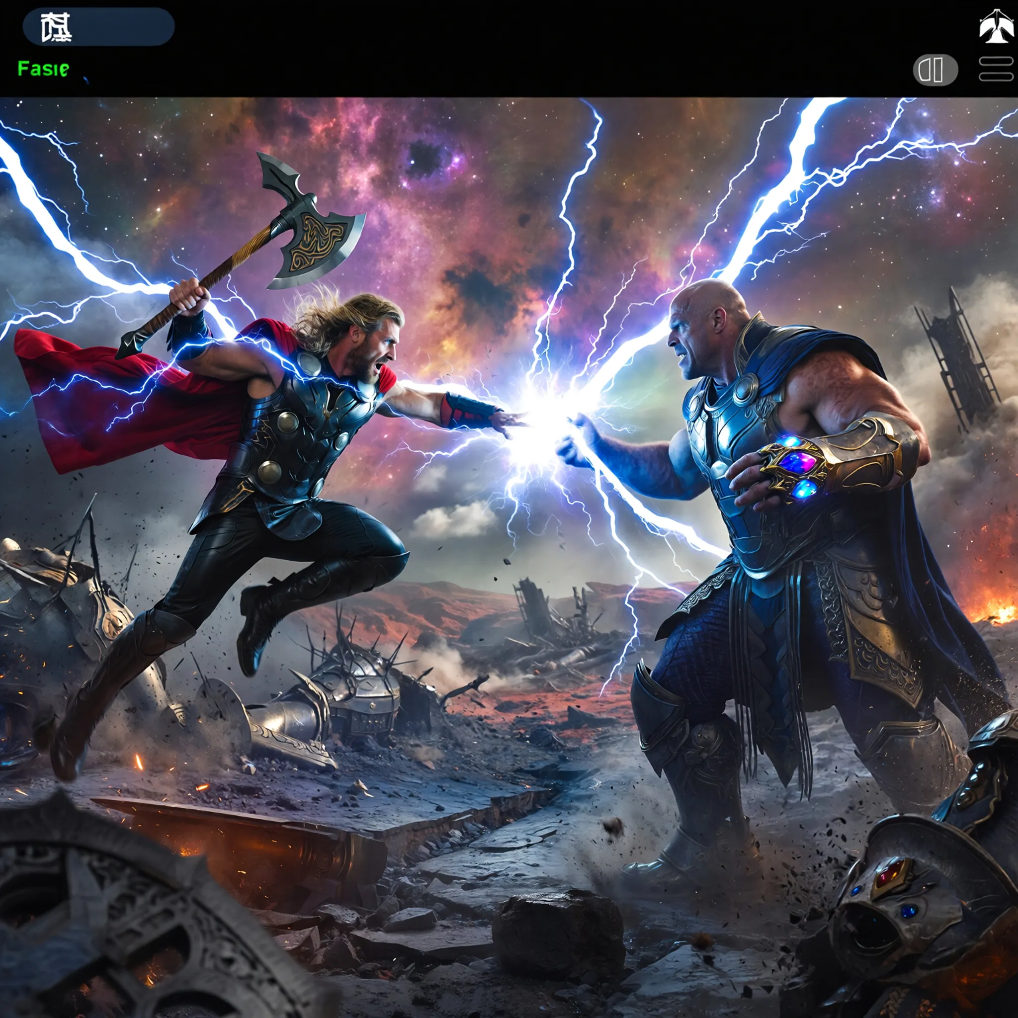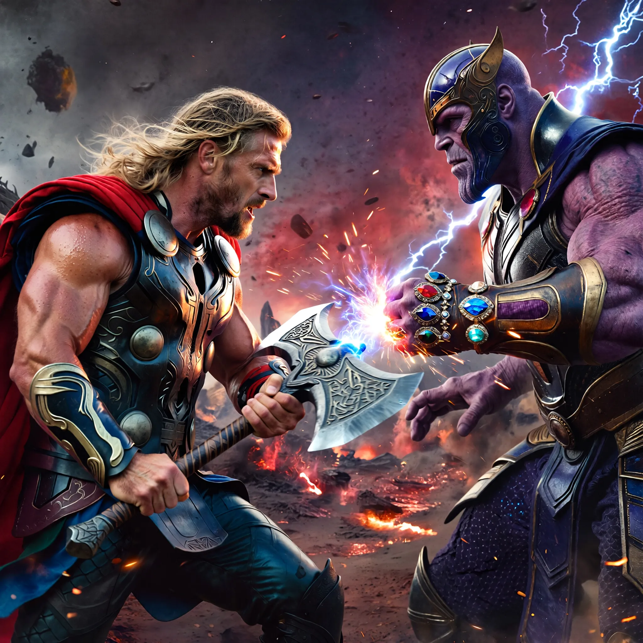 Prompt: Thor fighting thanos