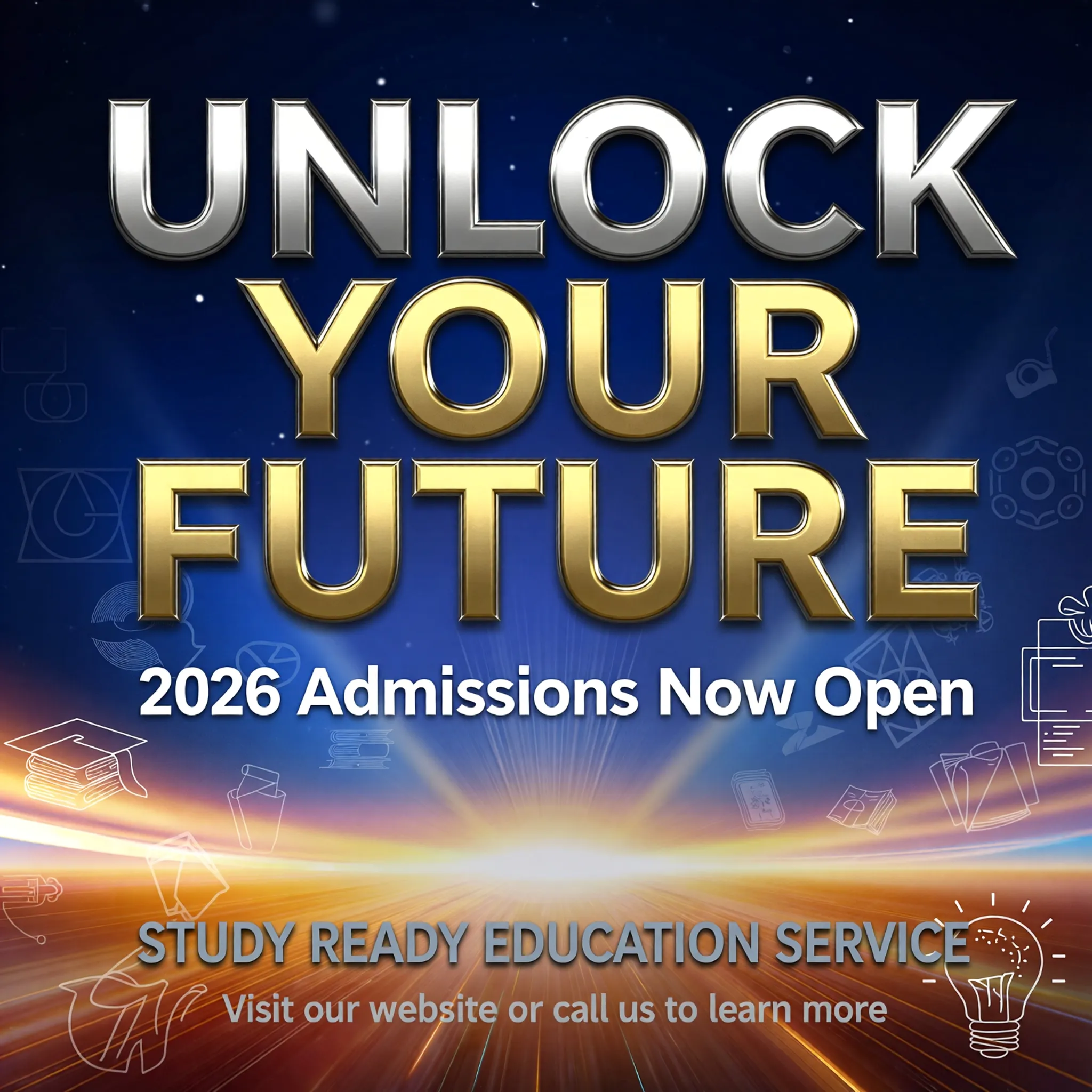 Prompt: I run a company named STUDY READY EDUCATION SERVICE. I want to create a poster announcing that 2026 admissions are now open. Please choose strong and attractive content for the poster and give me a suitable prompt for it.
