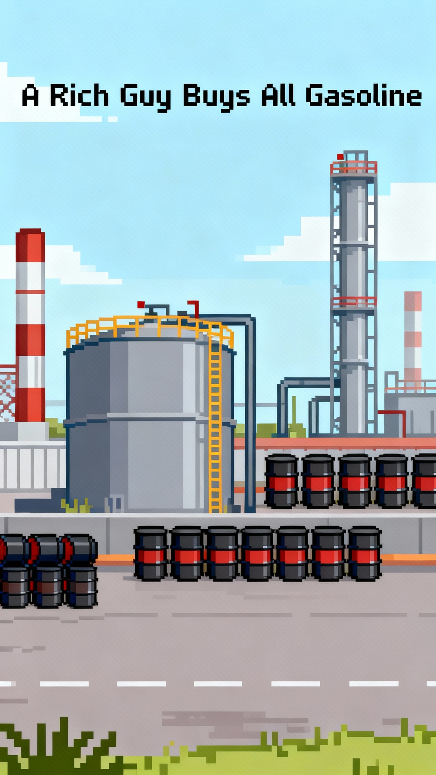 Prompt: Change text to “A Rich Guy Buys All Gasoline” and remove the trucks
