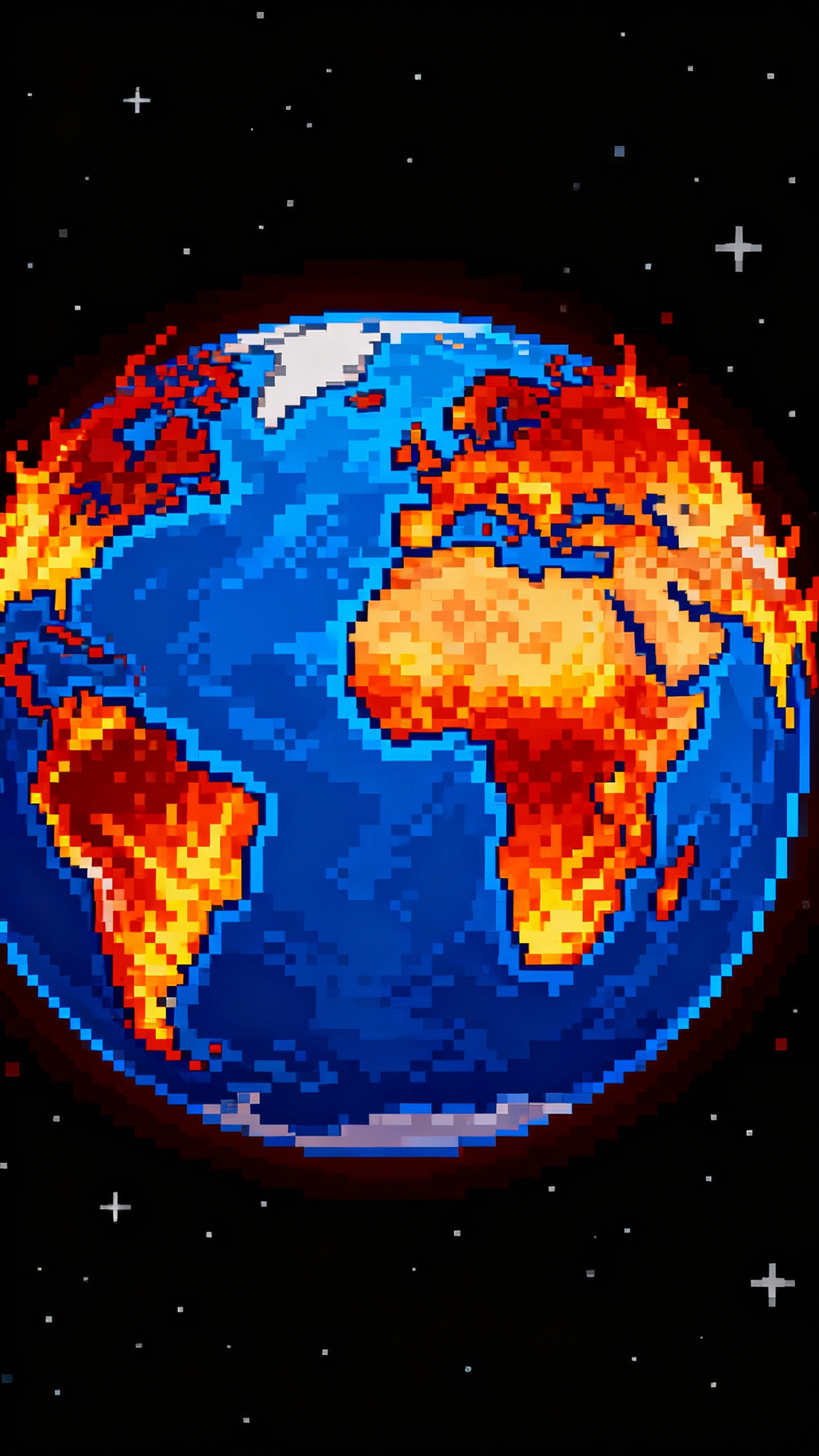 Prompt: Remove the text and the space base and the astronaut, and remove some of the flames around the earth