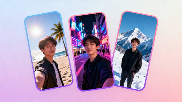 Anyone who wants vacation photos without traveling, content creators producing endless on-brand portraits without a photo shoot, people building dating-app or social-media profiles, gamers wanting stylized avatars based on their real face, friends gifting funny memorial scenes, and creators flooding feeds with consistent character imagery.
