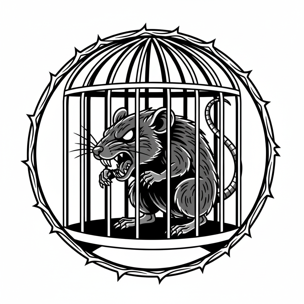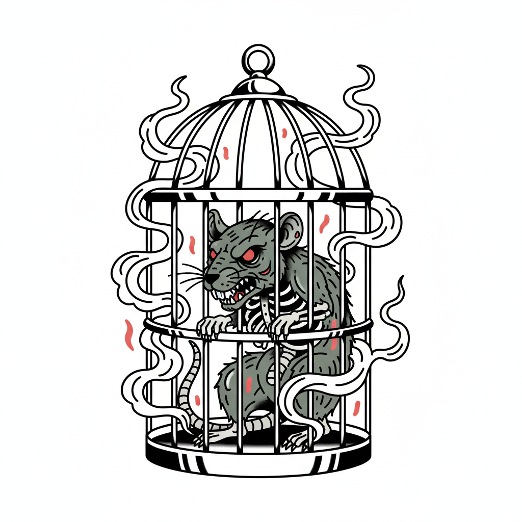 Prompt: despite all my rage I am still just a zombie rat in a cage